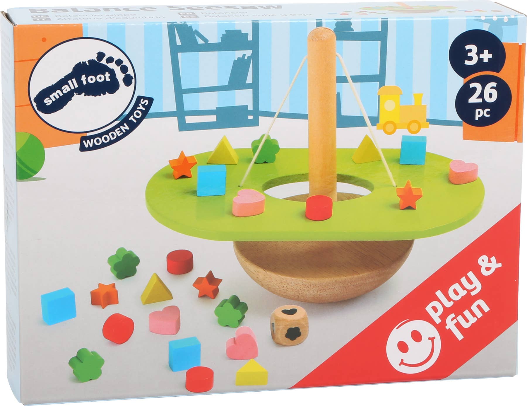 Un amusant jeu de patience pour exercer la motricité fine. Le but du jeu est de placer les formes indiquées par le dé sans que le balancier ne perde l´équilibre et que les pions ne tombent. Un jeu passionnant qui demande de la concentration et de l'habileté de la part de vos coéquipiers ! Qui garde les nerfs à la fin ?