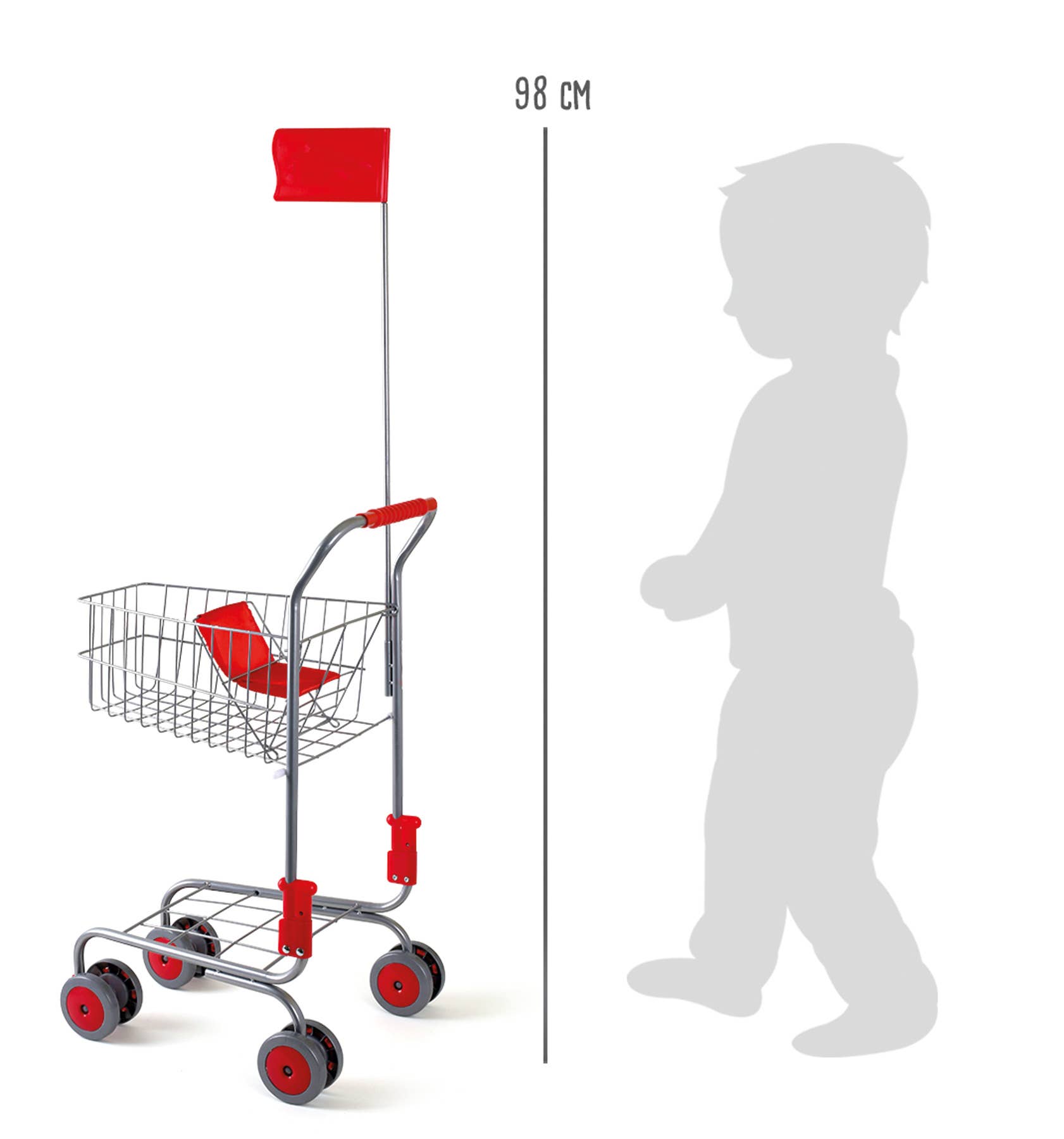 L'astuce pratique : Les roues avant pivotent sur 360 degrés et facilitent le roulement du caddy. Avec le caddie, même les petits peuvent imiter leurs parents et faire les courses comme les grands dans un jeu de rôle actif.