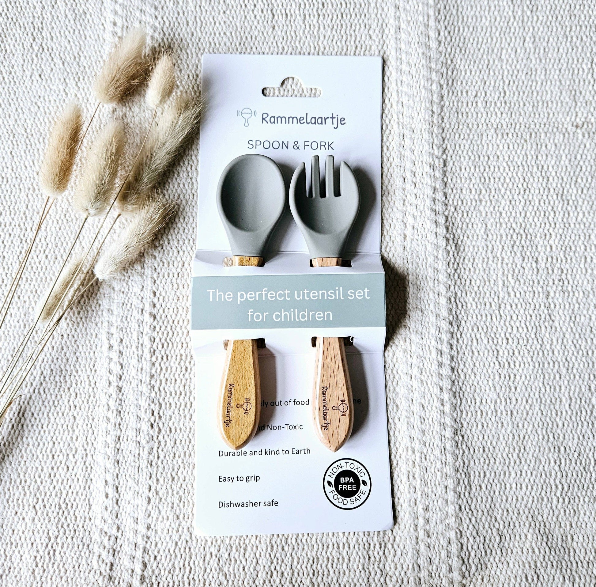 Set cuillère et fourchette Cet ensemble de couverts en silicone très pratique est parfait pour apprendre à manger.