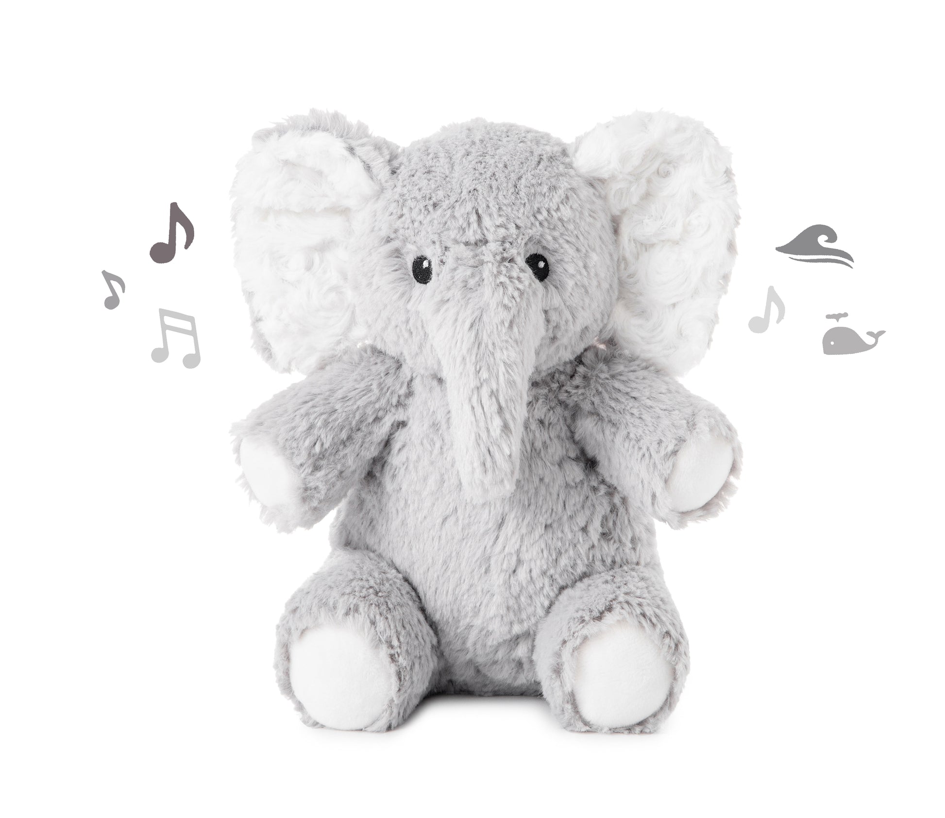 Elliot l'Eléphant On The Go - L'adorable peluche musicale Elliot l'Eléphant est disponible en format voyage ! Pratique, ce petit compagnon de voyage moelleux dispose de 4 bruits blancs : Ruisseaux Pluies de printemps Vagues de l’océan Chants des baleines . Sa petite taille lui permet de se fixer à la poussette, de se glisser dans un sac à langer ou encore dans un sac à main. Son boitier musical est amovible et le volume est réglable. Il dispose également d'une minuterie avec arrêt automatique : 23 et 45 minutes. Elliot l'Eléphant possède une languette auto-agrippante pour une fixation facile sur le lit de bébé.