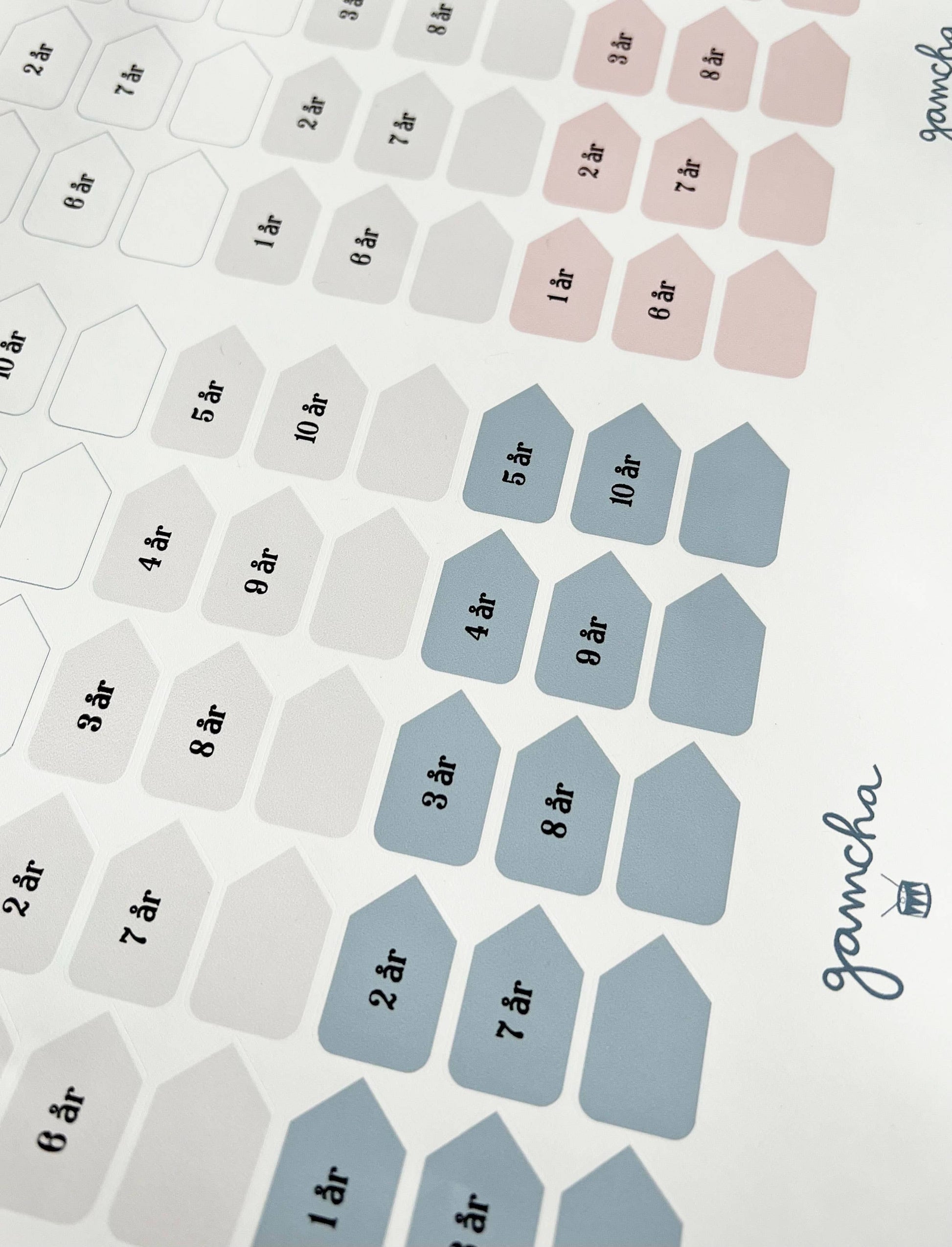 Une feuille d'autocollants est incluse, afin que vous puissiez ensemble marquer et suivre la croissance de l'enfant.