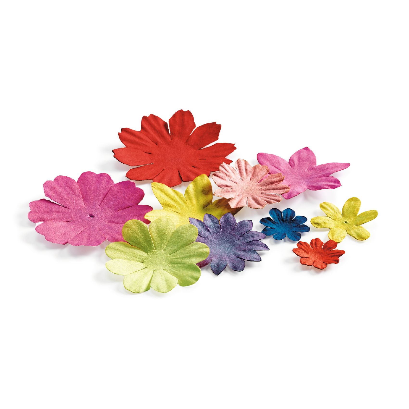 Des corolles de papier gaufré prédécoupées aux formes variées.