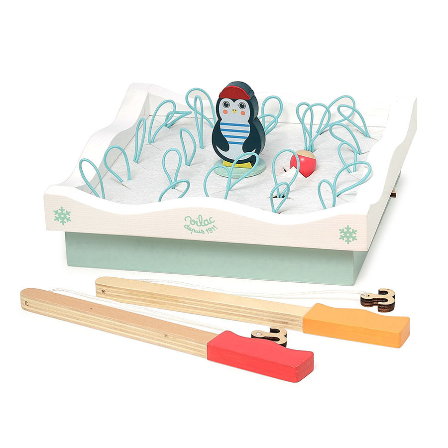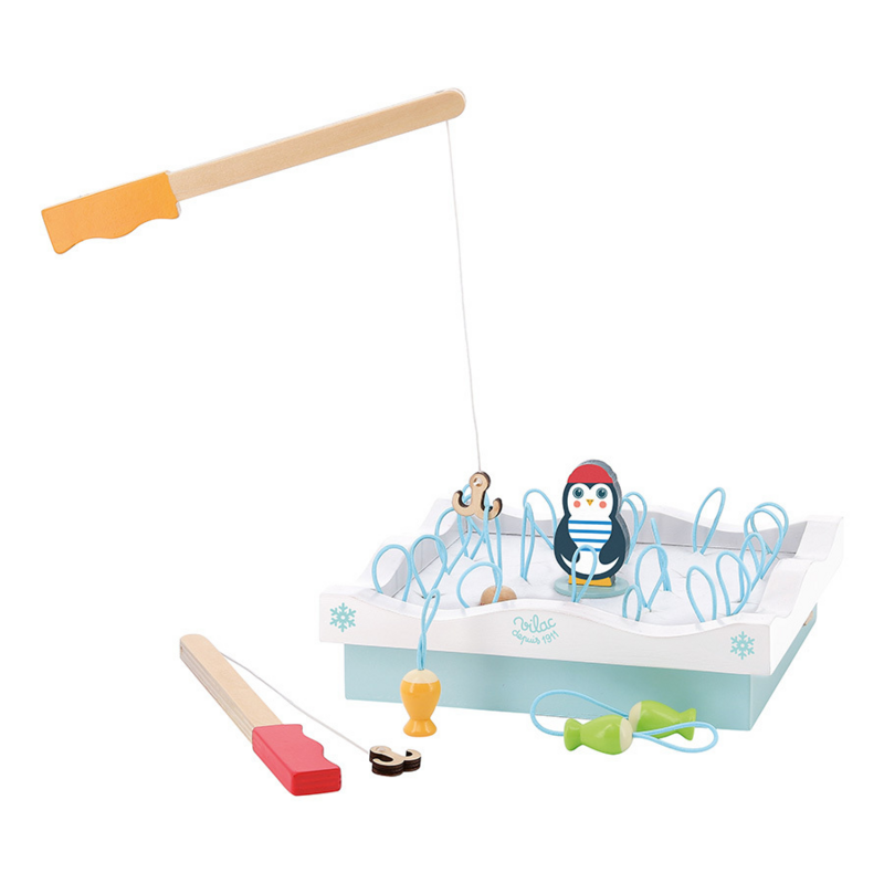 La règle du jeu est simple : Les poissons sont cachés sous la banquise en feutrine. Avec la canne à pêche, il faut pêcher 2 poissons en les soulevant par leur ficelle qui dépasse. Si c'est une paire, c'est gagné, sinon il faut les remettre à leur emplacement.