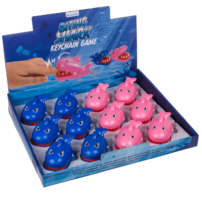 Porte-clés en métal, Biting Shark, env. 8 x 5 cm, 2 couleurs différentes, 12 pièces par présentoir Porte-clés