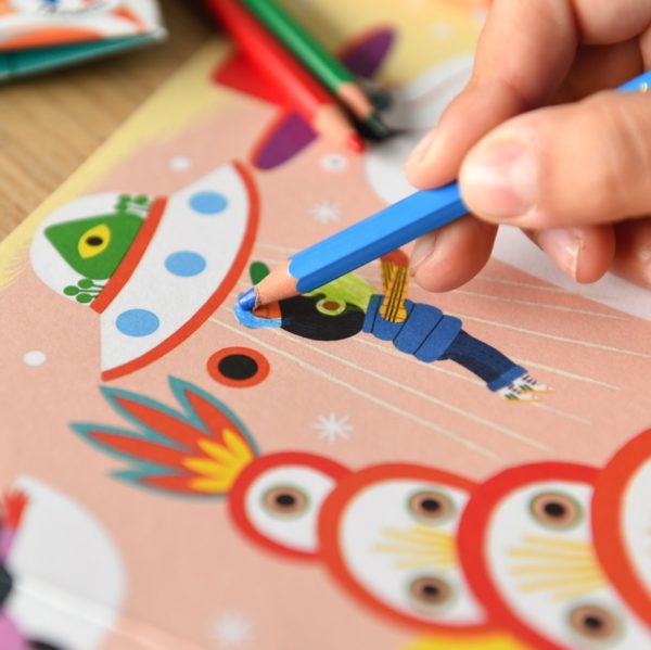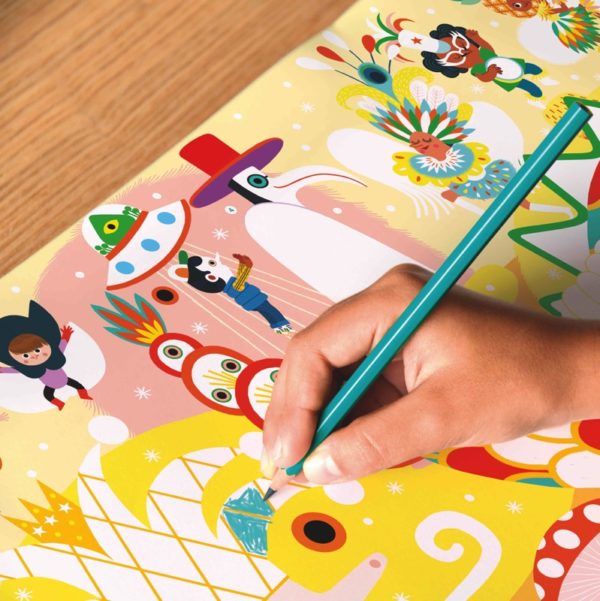L’enfant complète une magnifique œuvre d’art. Grâce aux zones déjà colorées, l’enfant vient facilement à bout de ce grand coloriage, et obtient un résultat vraiment harmonieux.