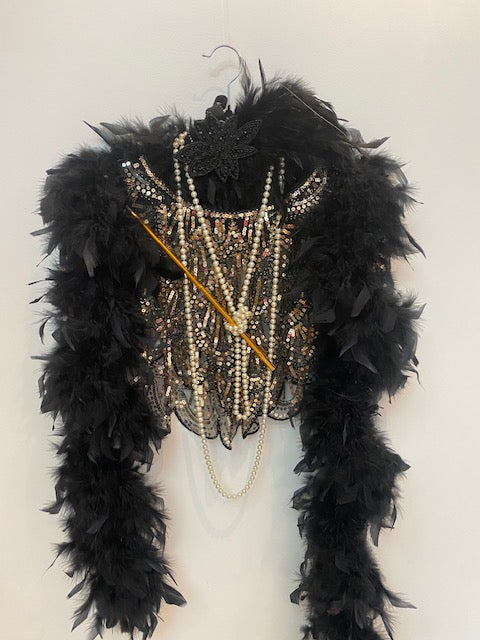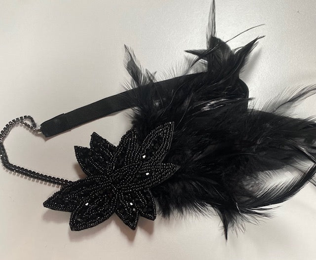 - Tour de tête en perles et plumes noir