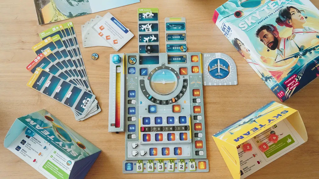 Un.e pilote et son.sa copilote sont aux commandes d’un avion de ligne. Ensemble, ils devront coordonner leurs efforts pour tenter de poser leur appareil dans différents aéroports du monde. Tour après tour, il faudra placer stratégiquement ses dés sur le tableau de bord pour tenter de compléter la procédure d'atterrissage.