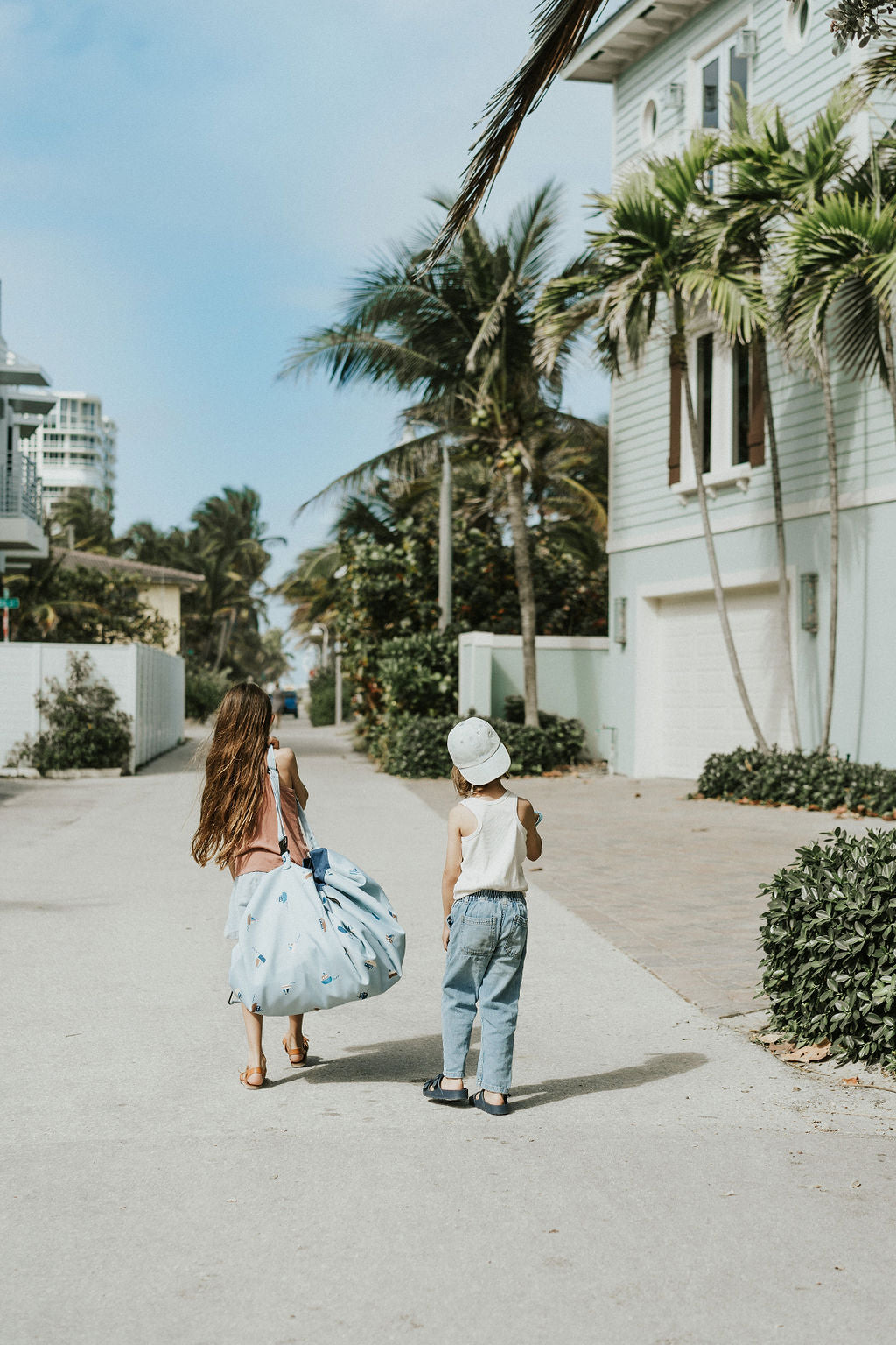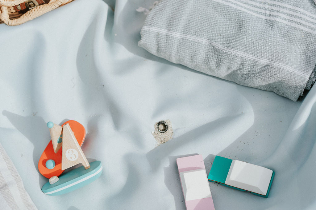 Remplissez le sac de plage avec les jouets d'extérieur préférés de vos enfants et regardez-les s'amuser sur ce tapis de jeu extérieur élégant et robuste.
