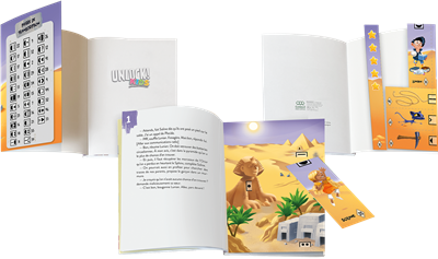Après la série des Escape Geek jouables à partir de 10 ans et s’inspirant des énigmes Unlock!, voici une toute nouvelle série de livres jeux destinée aux enfants à partir de 8 ans, inspirée des Unlock ! Kids. Les mécaniques adaptent la célèbre série de jeux en utilisant un système de symboles à assembler, sur les illustrations du livre, pour découvrir de nouveaux indices et paragraphes. Deux marque-pages représentent les jumeaux, dotés chacun d’un demi-symbole à assembler aux éléments du livre fonctionnant comme un livre dont vous êtes le héros.