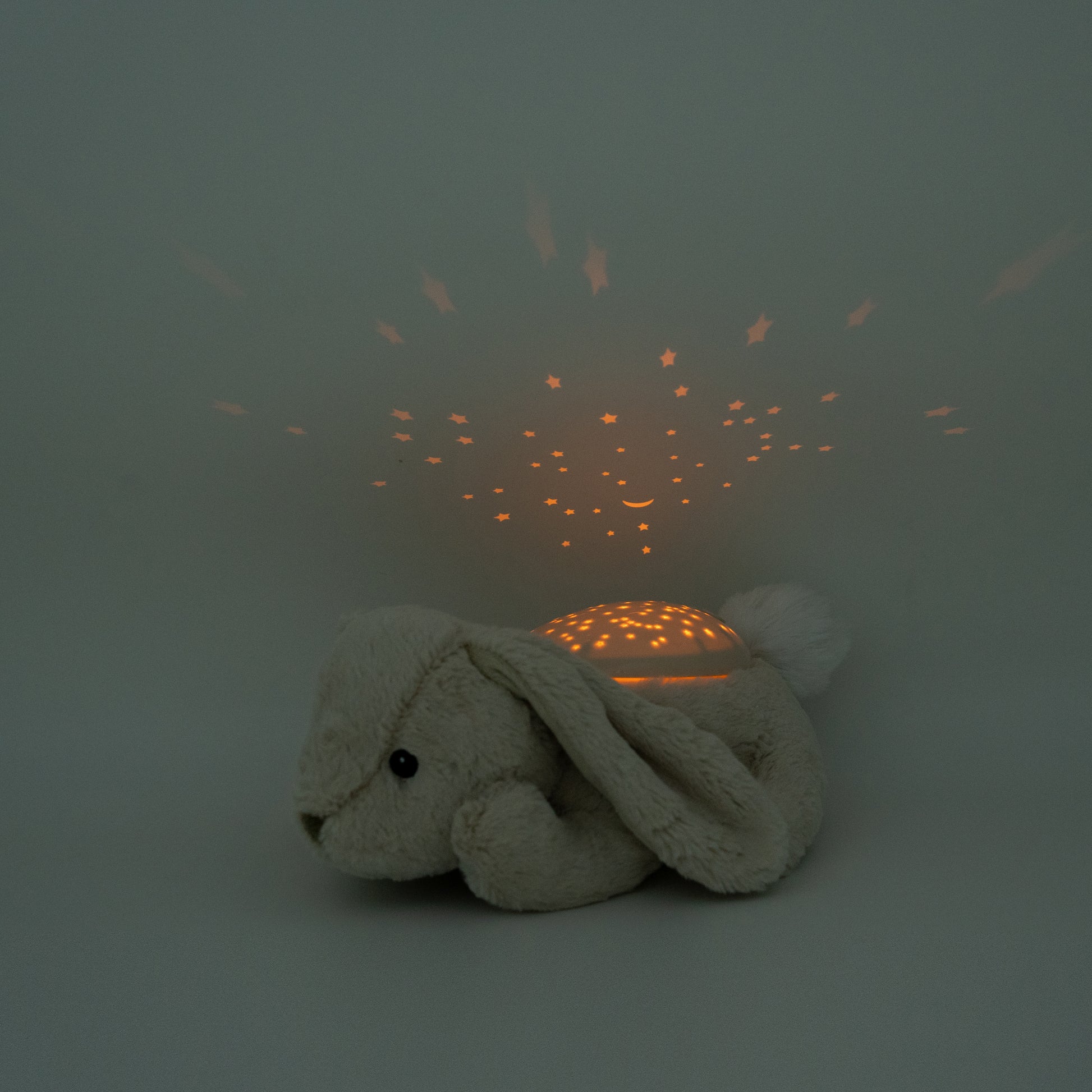 Twilight Buddies™ - La peluche veilleuse Lapin apaisera votre enfant au moment du coucher. Elle transforme une pièce sombre en un ciel étoilé en projetant la lune et 3 vraies constellations sur les murs et le plafond de la chambre, avec projection alternée en 3 couleurs apaisantes : vert, bleu et ambre Le minuteur de 45 minutes garantit une obscurité complète pendant le sommeil profond de l'enfant. Les petits trouveront sa compagnie rassurante et prendront plaisir à l'emporter avec eux pour voyager.